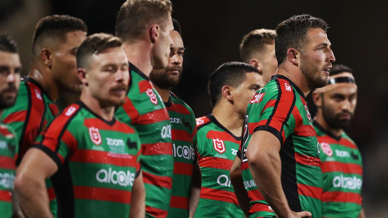 The south sydney rabbitohs have thrown the st george illawarra dragons' top eight credentials into question with a huge win on sunday.